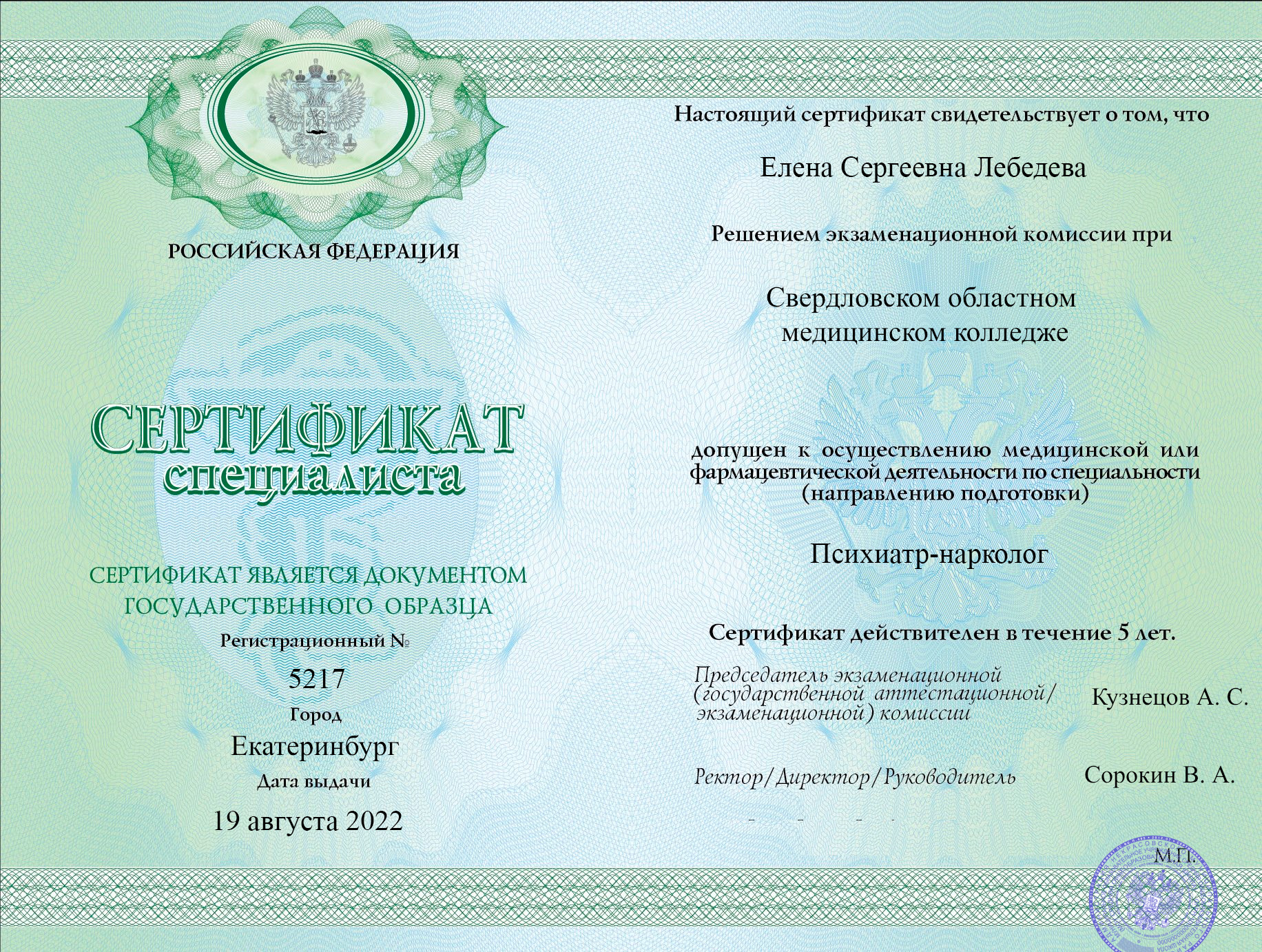 Елена Сергеевна Лебедева врач нарколог клиники доктора Стукаловой в Дылыме